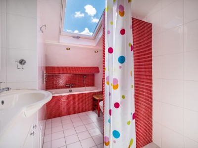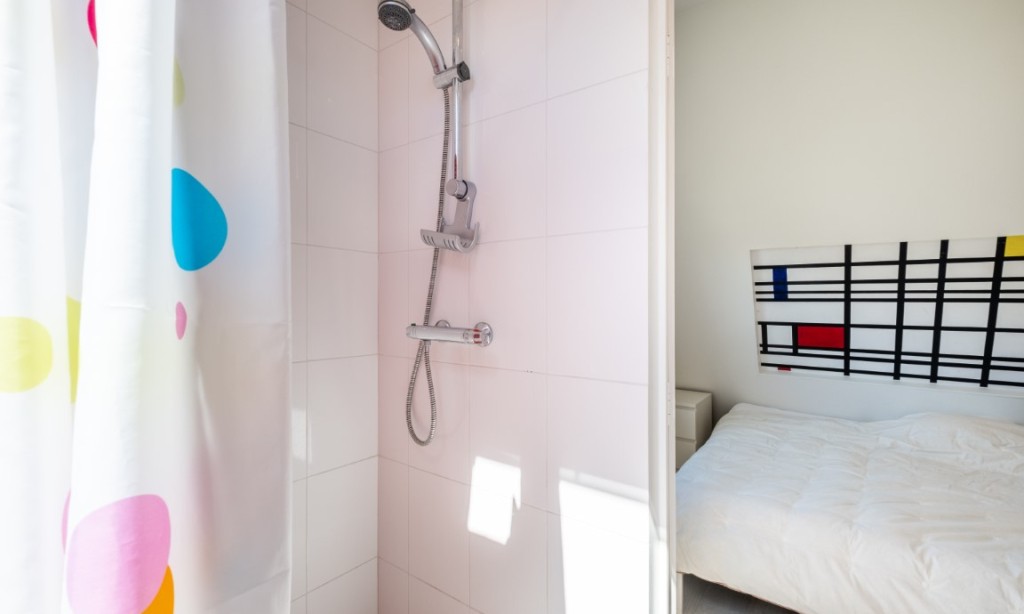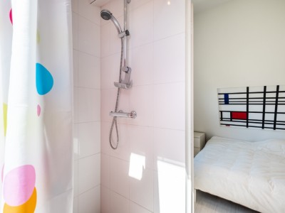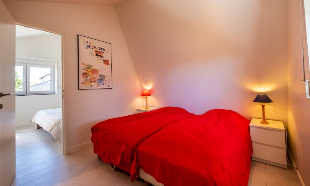 2 Schlafzimmer, Zimmer mit 2 Einzelbetten und Zimmer mit einem Doppelbett. Nützlich zu wissen ist, dass man durch das Schlafzimmer mit den 2 Einzelbetten gehen muss, um in das 2. Zimmer mit dem Doppelbett zu gelangen. Durch das Zimmer mit dem Doppelbett haben Sie Zugang zum 2. Badezimmer mit Badewanne, Dusche, Waschbecken und Toilette.