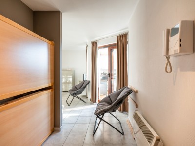 Diese komfortable und gepflegte Wohnung besteht aus einem Flur mit Schlafbereich, einem Wohnzimmer mit offener Einbauküche, einem geräumigen, möblierten und sonnigen Eckbalkon mit Blick auf den Garten, einem Schlafzimmer, einem Badezimmer mit Dusche, Haustiere nicht erlaubt, Nichtraucher, Parkplatz inbegriffen. Achtung: Tiefgarage für gute Fahrer!