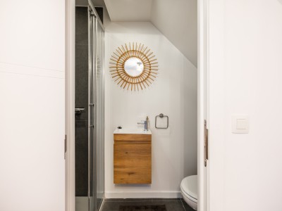 • Sanitäranlagen: 2 Badezimmer mit Dusche, Toilette im Badezimmer im Obergeschoss, separate Toilette im Erdgeschoss.