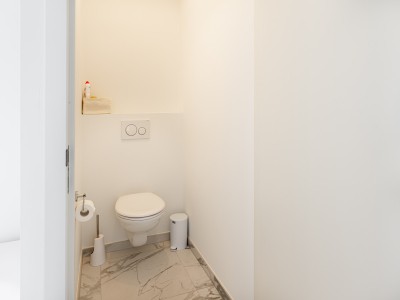 Erdgeschoss: Eingangshalle, Toilette, modernes Wohn-/Esszimmer, voll ausgestattete offene Küche (Geschirrspüler, Backofen, Mikrowelle, Kühlschrank mit 3 separaten Gefrierschubladen), Zugang zum umzäunten Garten und zur gemütlichen Terrasse, die sich direkt neben der Küche befindet.