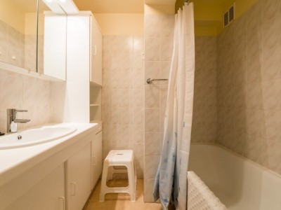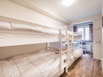 Halle, Wohnzimmer mit Meerblick, eine einfachen Küche mit Durchreiche, WC, Bad mit Badewanne, Schlafzimmer mit zwei Etagenbetten, ein Schlafzimmer mit Doppelbett, Digital-TV, kleine haustiere erlaubt.