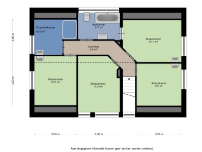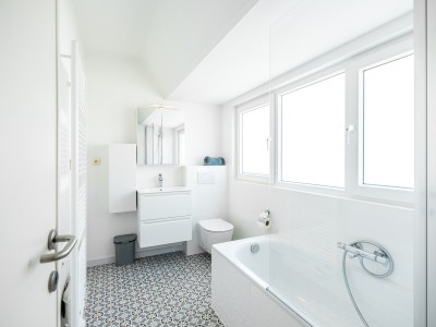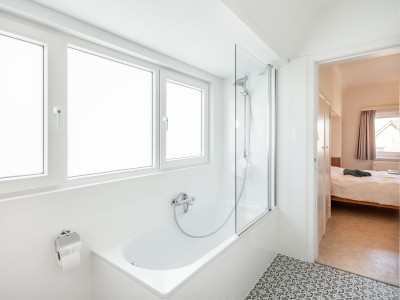 1ste Stock: 2 große Schlafzimmern mit 2 Einzelbetten, 1 Schlafzimmer mit 1 Doppelbet, 1 Schlafzimmer mit 1 Doppelbet und 1 Einzelbett. Waschbecken im 3 Schlafzimmern. Badezimmer mit Badewanne, Waschbecken und Toilette. Badzimmer mit Dusche.