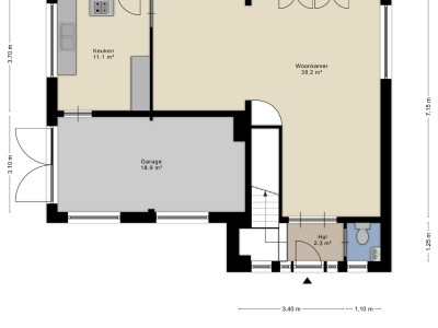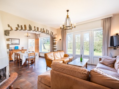Erdgeschoss: Halle mit WC, helles Wohnzimmer und Essbereich mit Zugang zur schönen Terrasse mit Blick auf den Garten, separate Küche, Garage.