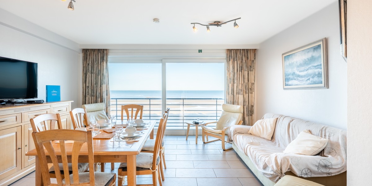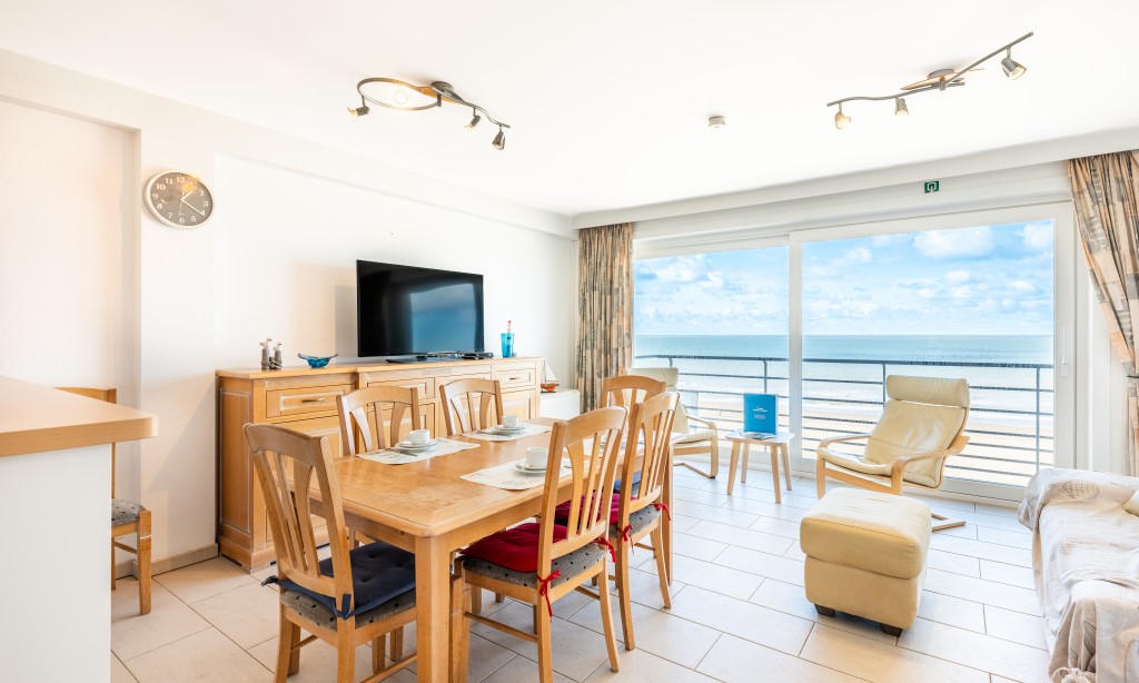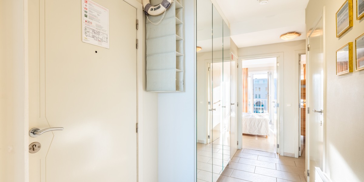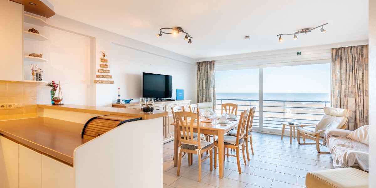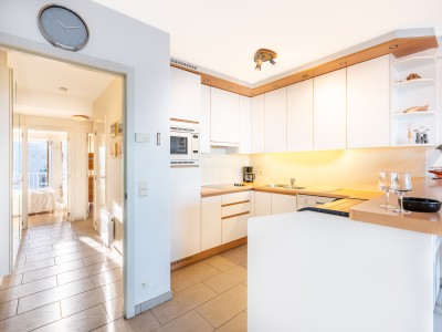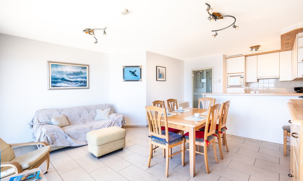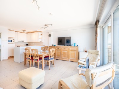 Geräumige und elegante Wohnung im 5. Stock mit 2 Schlafzimmern. Das Appartment liegt direkt am Meer, nahe dem Zentrum mit seinen vielen Restaurants und Geschäften. Haustiere sind erlaubt.