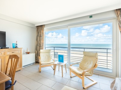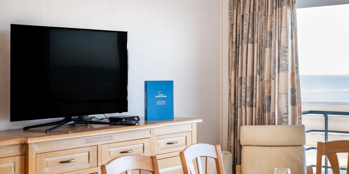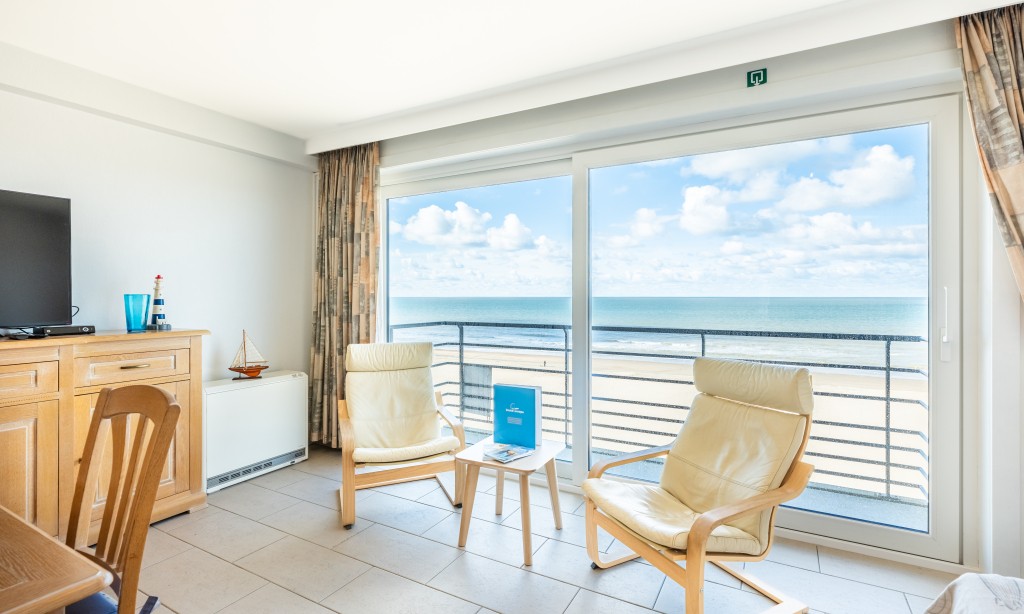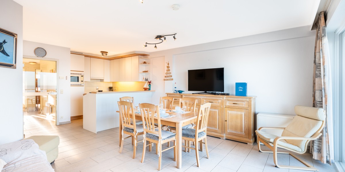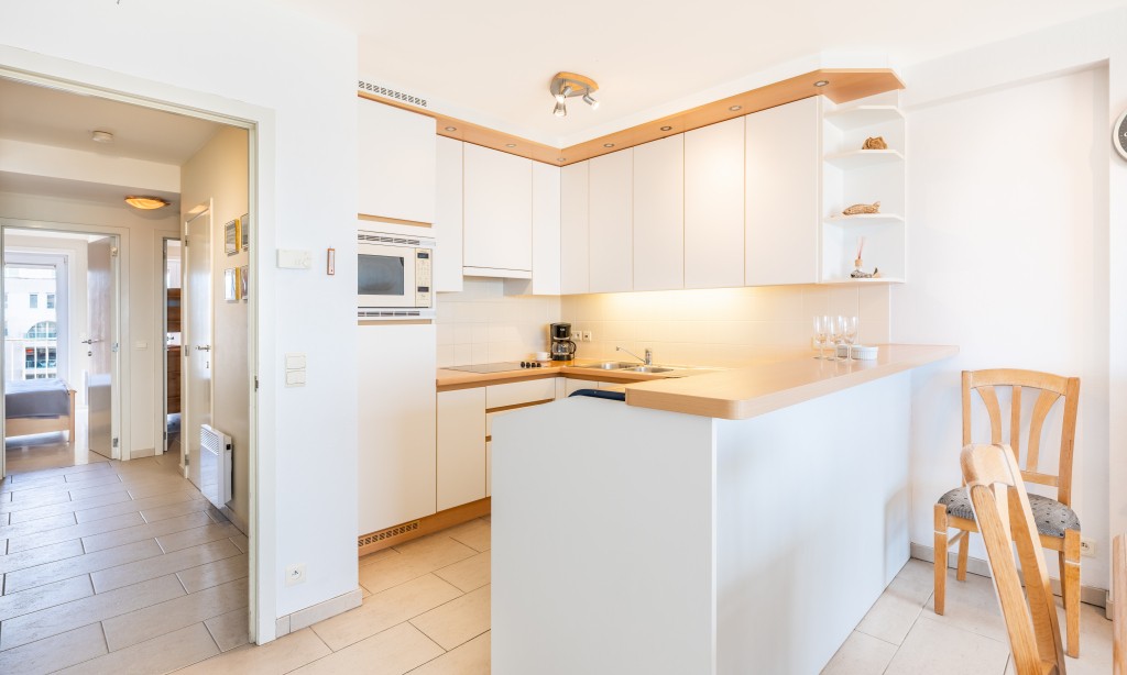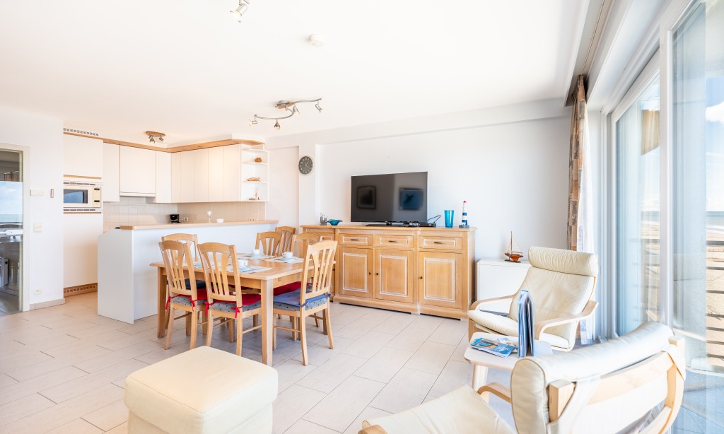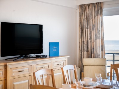 Geräumige und elegante Wohnung im 5. Stock mit 2 Schlafzimmern. Das Appartment liegt direkt am Meer, nahe dem Zentrum mit seinen vielen Restaurants und Geschäften. Haustiere sind erlaubt.