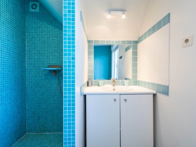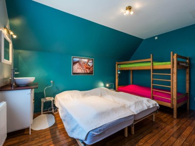 Im 2. Stock: Schlafzimmer mit 2 Einzelbetten und ein Etagenbett und Zimmer mit einem Einzelbett, Toilette und Bad mit Dusche.