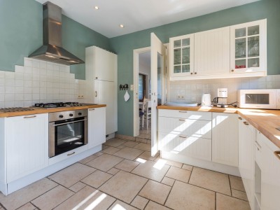 Auf parterre: Das Anwesen besteht aus einem Vorraum, separates WC, ein großes Wohnzimmer, moderne Küche / Veranda mit Zugang zur Terrasse. Große Gärten und Sandkasten. Strandhütte auf Meereshöhe mit Stern des Meeres.