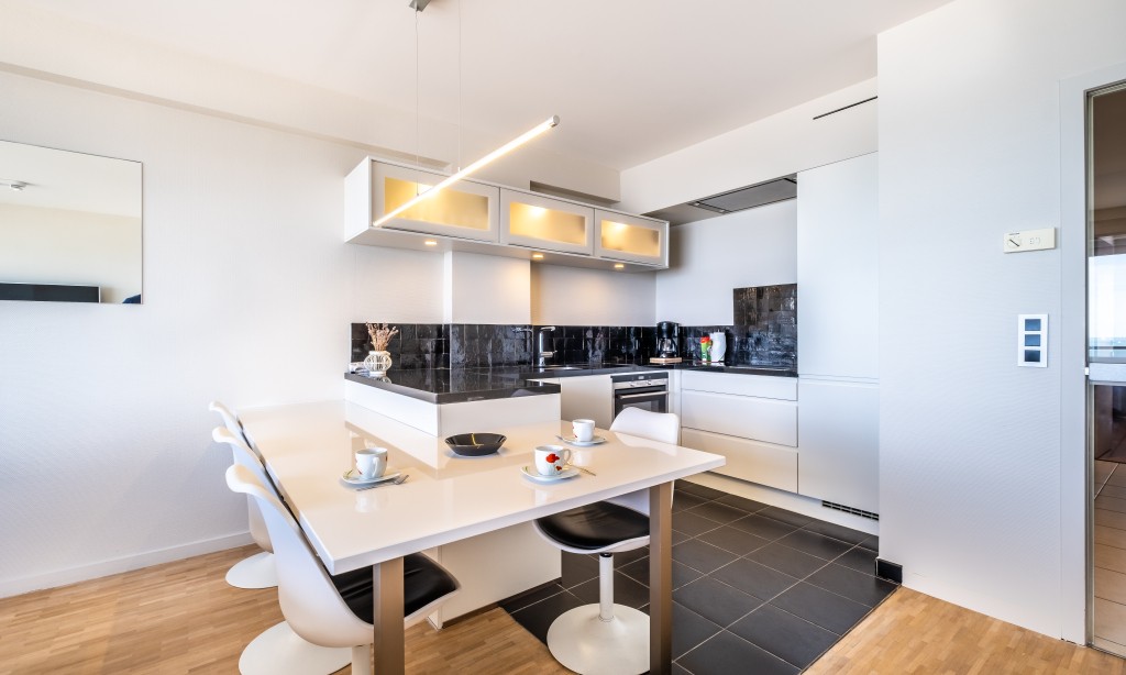 Moderne 2-Zimmer-Wohnung auf dem Zeedijk, in der Nähe des Einkaufszentrums. Geschmackvoll dekoriert mit geräumiger Sonnenterrasse. Balkon mit Meerblick. Stilvolles und luxuriöses Interieur.