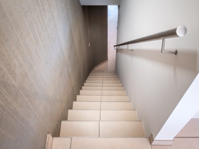 Eingang im 1. Stock mit Wohnzimmer, offener Küche und WC. Erdgeschoss: 2 Schlafzimmer (Doppelbett + Etagenbett) und Bad mit Dusche. Das Hauptschlafzimmer hat Zugang zur gefliesten Terrasse hinten. Zusätzliche abgeschlossene Terrasse über den Seiteneingang, ideal für Fahrräder. Sonniger Balkon mit Bistro-Set.