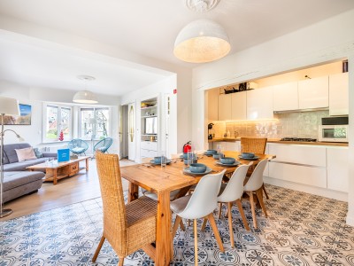 Renovierte typische Küstenvilla mit Sitzecke und offener Ess-/Küche, Bad, Spielzimmer, schöner möblierter Terrasse und Parkplatz für 1 Auto. Es gibt 1 Schlafzimmer aufs Erdgeschos, 3 Schlafzimmer im Obergeschoss und einen großen Dachboden zum Spielen. Alles ist nah, da die Villa im Zentrum liegt, 2 Minuten von Geschäften und Restaurants und 400 m vom Meer entfernt. Im Folgenden finden Sie eine detaillierte Beschreibung der Unterkunft. Der Plan der Villa ist auf den Fotos zu sehen.