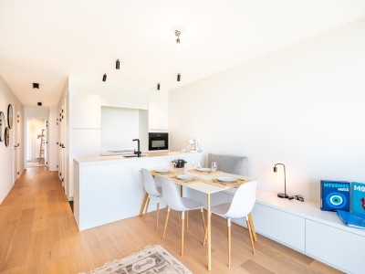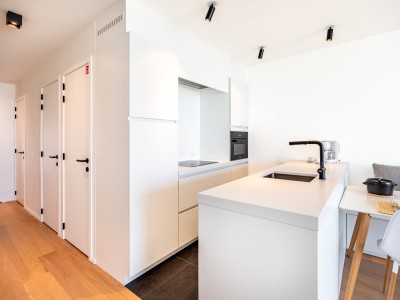 Moderne Luxus-Neubauwohnung am Zeedijk mit 2 Schlafzimmern im zweiten Stock mit Aufzug. Geräumiges Wohnzimmer mit frontalem Meerblick. Modern eingerichtet und mit allen Annehmlichkeiten ausgestattet.