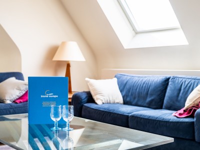 Im 3. Stock: Über die Treppe im Wohnzimmer gelangen Sie zu den beiden anderen Schlafzimmern. Das erste Schlafzimmer hat ein Doppelbett (160 x 200) mit einer Bettdecke für 2 Personen und ein Badezimmer mit Dusche. Das zweite Schlafzimmer hat ein Doppelbett (160 x 200) mit einer Bettdecke für 2 Personen. Es gibt ein Familienbadezimmer mit Doppelwaschbecken und einer Badewanne. Es gibt auch eine separate Toilette auf dieser Etage.