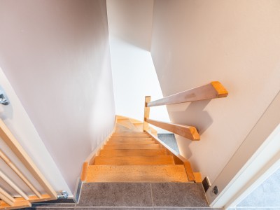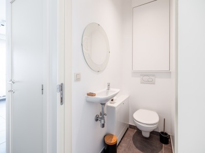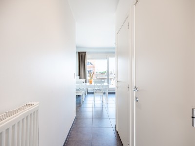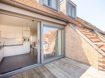 Im 4. Stock befinden sich der Flur, eine separate gut ausgestattete Küche mit Esstisch und Zugang zur Terrasse an der Zeelaan-Seite (Sonne am Morgen), das Wohnzimmer mit Ecksofa und Zugang zur 2. Terrasse (Sonne am Nachmittag). Es gibt auch einen Abstellraum mit Waschmaschine und Trockner. Im Wohnzimmer führt die Treppe in den oberen Stock.