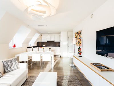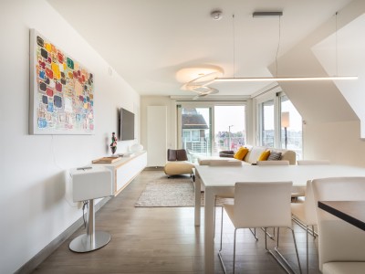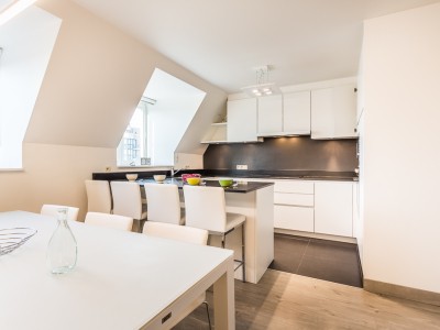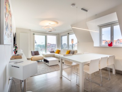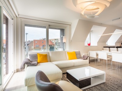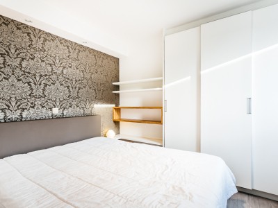 Sonniges Eckapartment mit 1 Schlafzimmer, nahe dem Zentrum und 250 m von der Strandpromenade entfernt. Modernes und stilvolles Apartment im 3. Stock mit Aufzug. Garage im Preis inbegriffen. Keine Haustiere erlaubt.