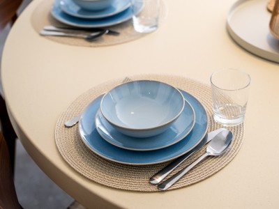 Kleiner privater Innenhof, zugänglich über das Schlafzimmer, mit Bistrotisch und 2 Stühlen sowie großem runden Picknicktisch für 6 Personen direkt vor der Residenz (Foto)