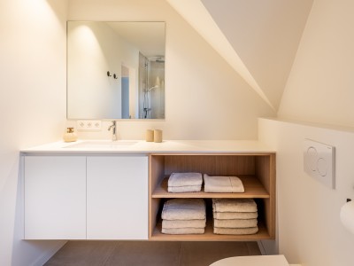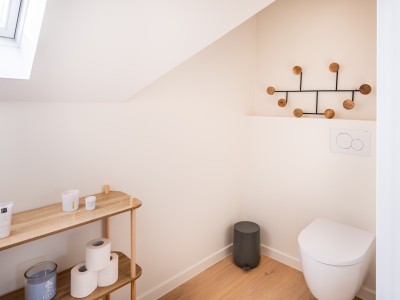Separate Toilette, Familienbadezimmer mit begehbarer Dusche und Waschbecken. Auf dieser Etage befinden sich 4 Schlafzimmer: 1. Schlafzimmer mit Doppelbett, begehbarer Dusche und Waschbecken, 2. und 3. Schlafzimmer mit 2 Einzelbetten, 4. Schlafzimmer mit Doppelbet.