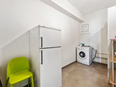 Diese Wohnung besteht aus einem Halle, WC, großer Abstellraum, Wohnzimmer, separate Einbauküche, Badezimmer mit Dusche und Waschmaschine, Schlafzimmer mit Doppelbett, Schlafzimmer mit 2 Etagenbetten.