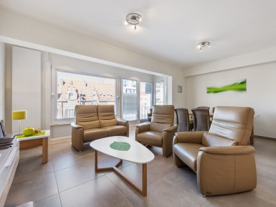 Sonnige une geräumige Wohnung 2 Zimmer im Zentrum von Koksijde 500 m vom Meer, 2te Stock (Aufzug). Sehr charmant und sehr gut gepflegt. Haustiere nicht erlaubt, Katzen nicht erlaubt, Nichtraucher