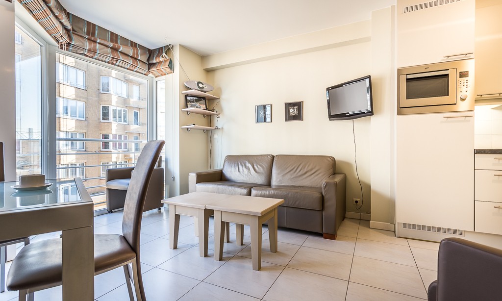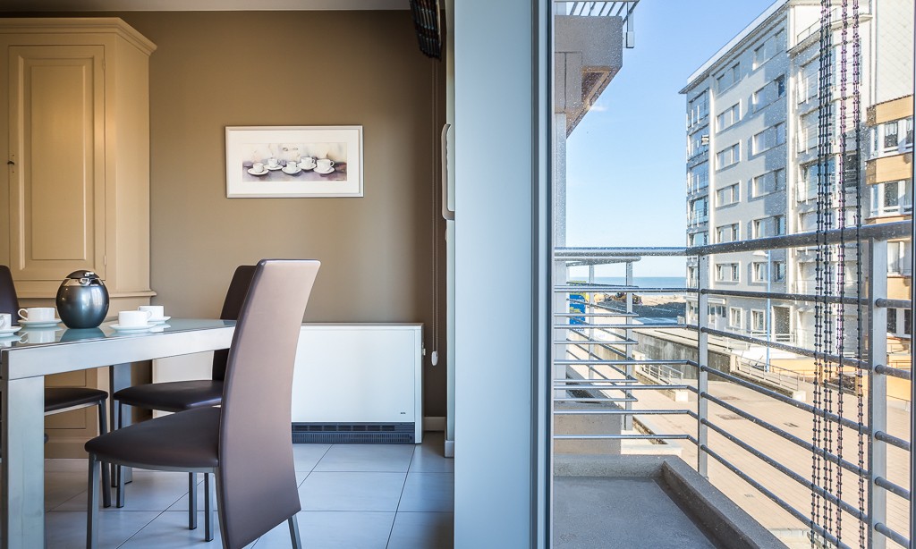 2 Schlafzimmer Apartment mit seitlichem Meerblick, 80m vom Strand und nahe dem Zentrum von Koksijde. Sonnenterrasse auf der Rückseite der Wohnung. Haustiere sind nicht erlaubt.