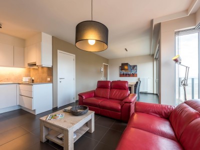 Sehr schöne Wohnung in einer modernen Residenz mit 2 Schlafzimmern und seitlichem Meerblick. Die Wohnung befindet sich im 6. Stock mit Aufzug, ist modern und mit allem Komfort ausgestattet, einschließlich einer voll ausgestatteten Küche. Die Wohnung liegt im Zentrum von Koksijde, an der Ecke der Promenade und einer Straße, die senkrecht zum Meer verläuft.