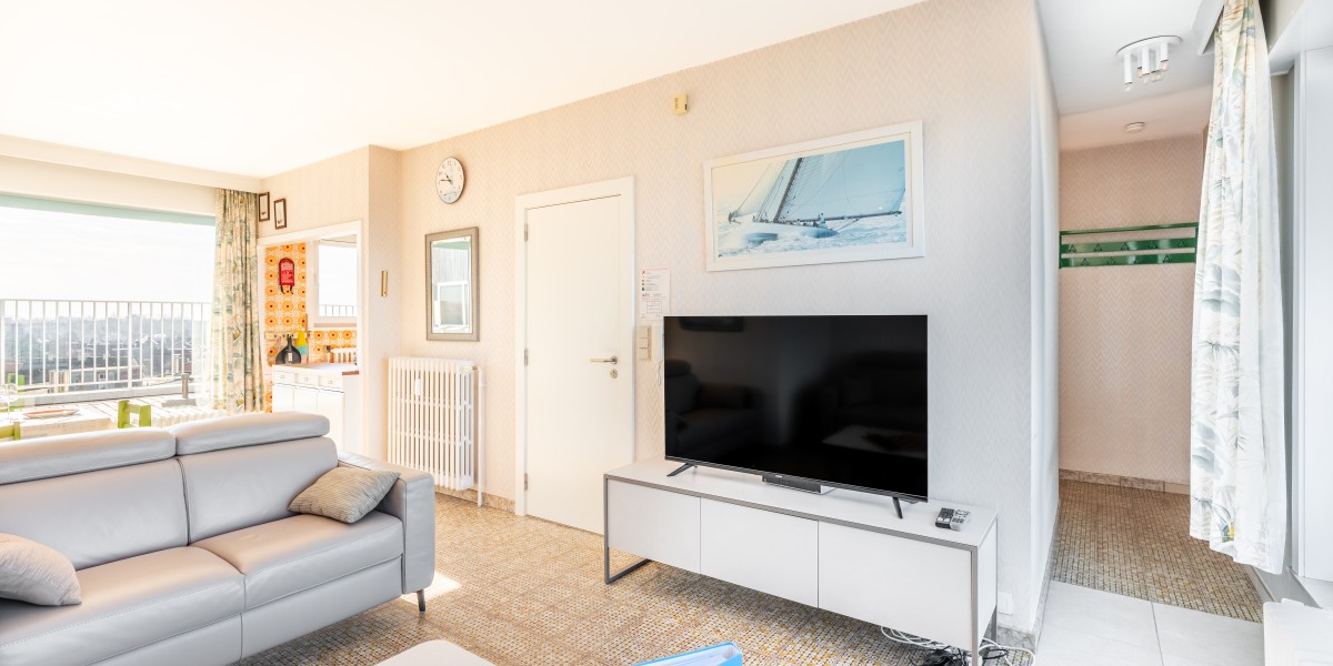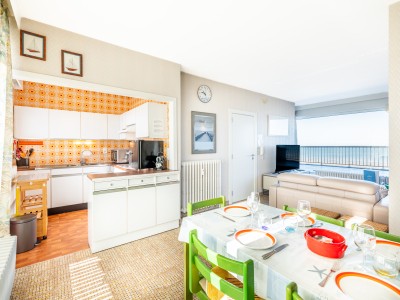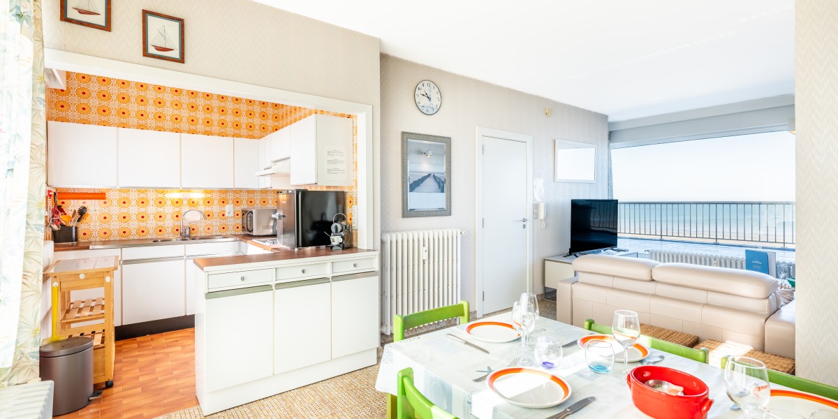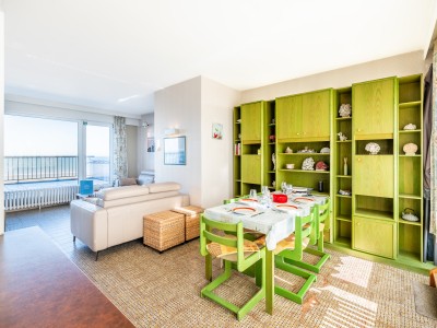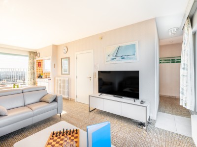 Penthouse mit 2 Schlafzimmern auf dem Deich. 2 große Terrassen. Diese Wohnung besteht aus einem Wohnzimmer mit Meerblick und Zugang zur Terrasse, Essbereich und Küche mit Zugang zur Sonnenterrasse. Badezimmer mit Badewanne, Schlafzimmer mit Doppelbett und ein Schlafzimmer mit zwei Einzelbetten. Digitales Fernsehen und W-lan zur Verfügung. Haustiere erlaubt.