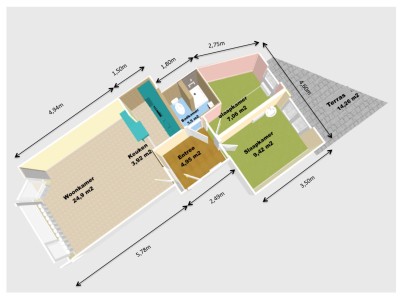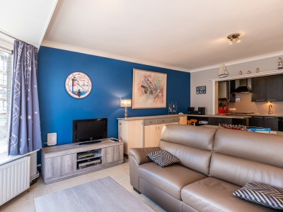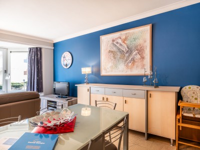 Halle, Wohnzimmer mit seilicher Meerblick , offene Küche, Badezimmer mit Dusche und WC, Schlafzimmer mit Doppelbett, Schlafzimmer mit Etagenbett für 3 Personen. Geschlossene Terrasse an die Schlafzimmern. Garage box inklusiv, auf 250m vons Appartment.