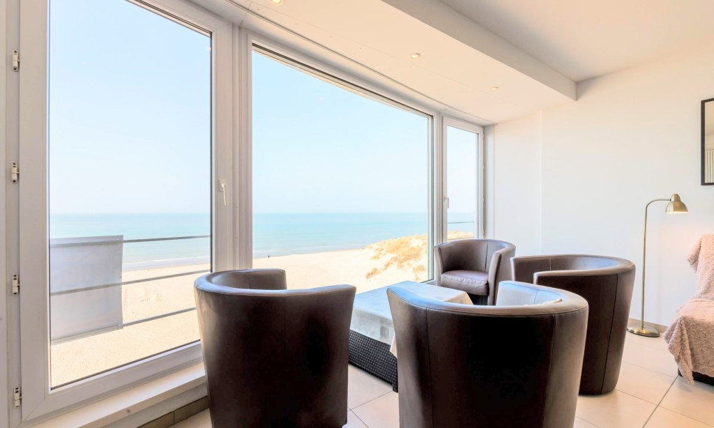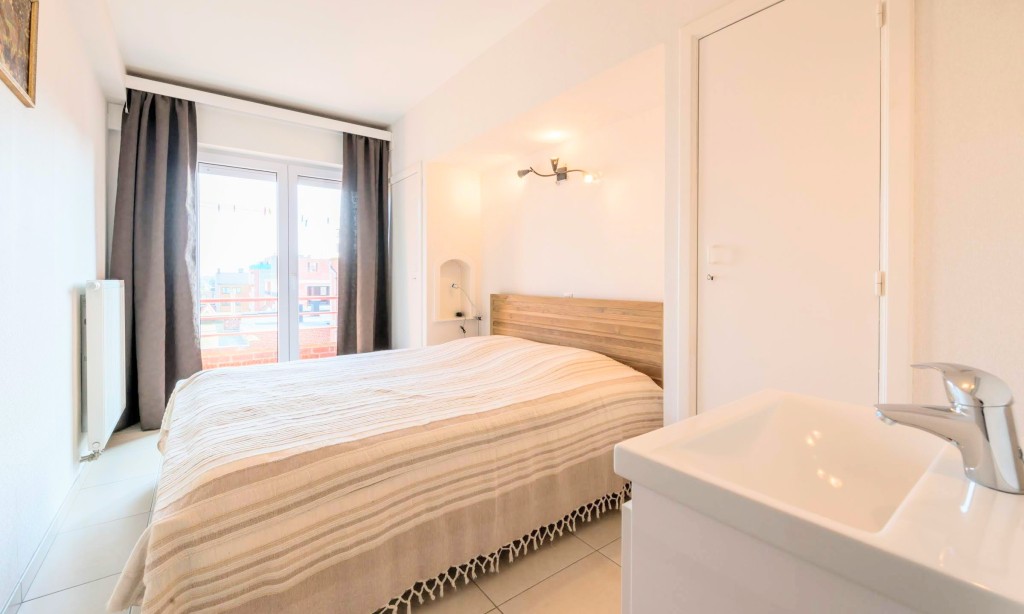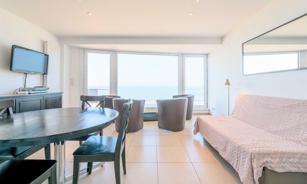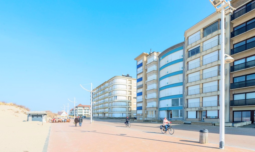 Schöne renovierte 2-Zimmer-Wohnung auf dem Deich in Koksijde (5te Stock mit Aufzug) in der Nähe von St-André Dünen. Apartment mit digitale Fernsehen. Haustiere sind nicht erlaubt.
